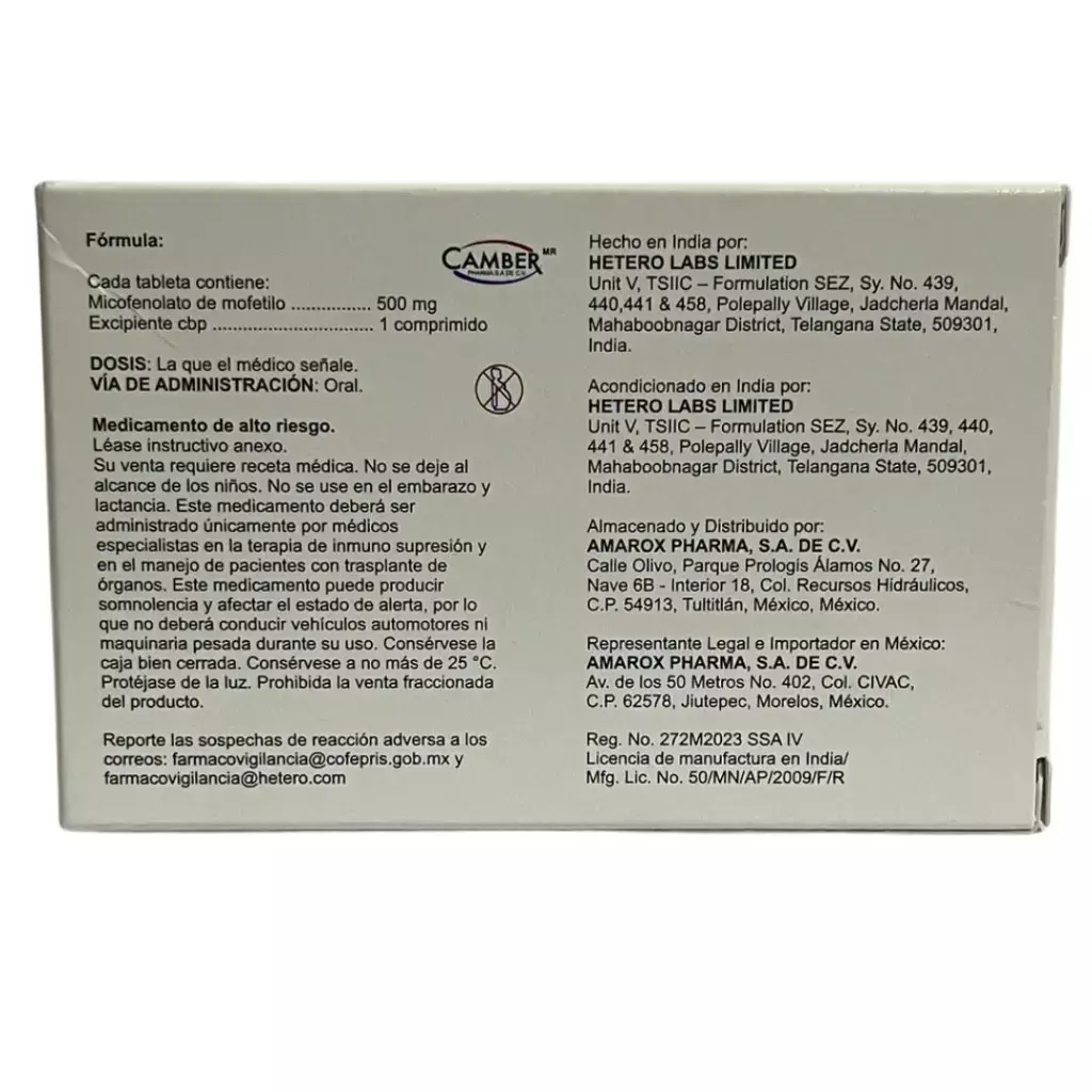 Micofenolato de mofetilo 500 mg Caja c/50 Comprimidos